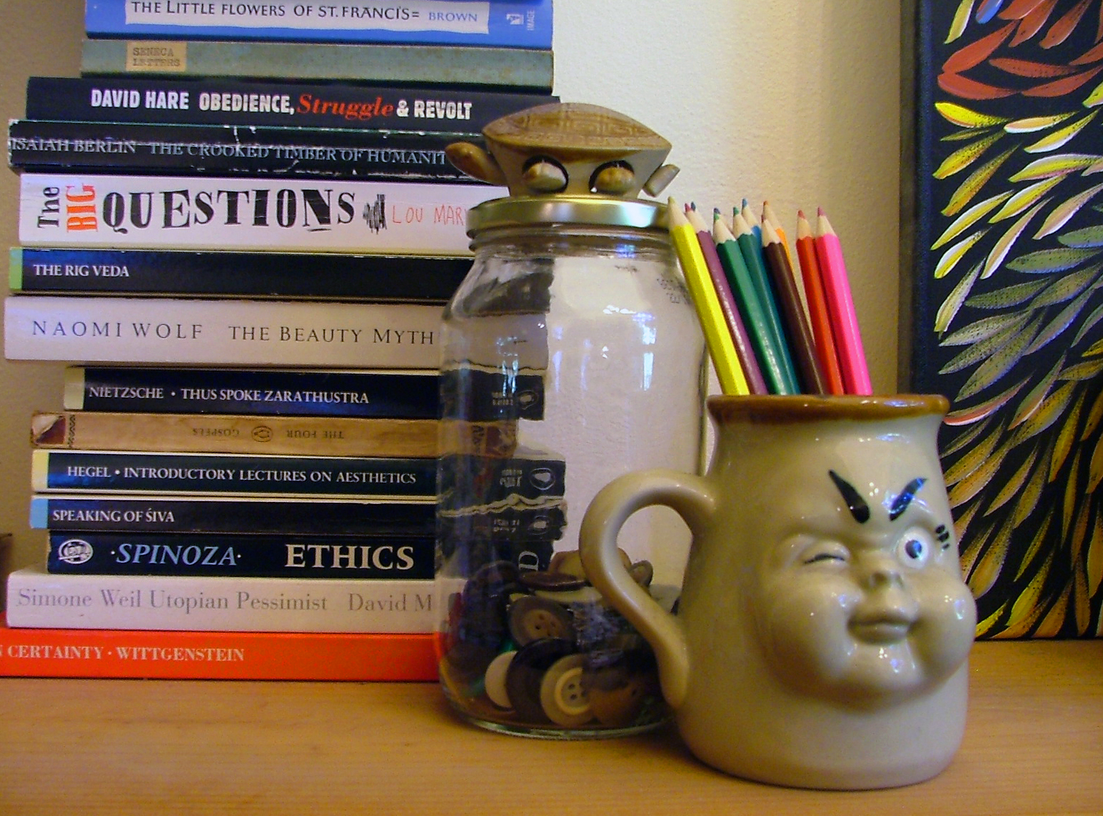 After reading the book, I thought about what gods might inhabit our home which is also our office and studio, and sometimes rehearsal space and meeting place.