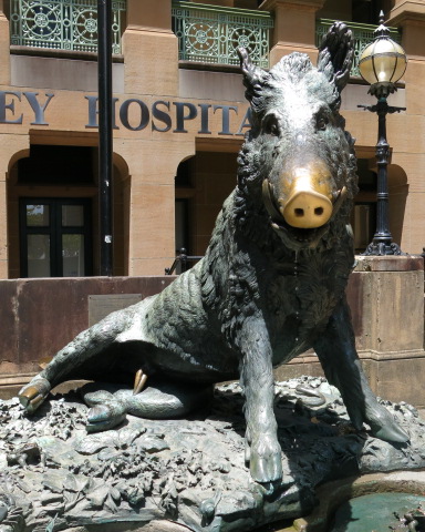 Il Porcellino: Ask a Sydney sider to meet you by the pig and they’ll know exactly where you mean. But the Sydney Hospital Pig, whose nose everybody rubs while they are waiting, is actually a wild boar. He was presented to the The Sydney Hospital and Sydney Eye Hospital in 1968 by the Marchessa Clarissa Torrigiani in memory of her father, Dr Thomas Fiaschi and her brother Dr Piero Fiaschi who were eminent surgeons at the hospital.