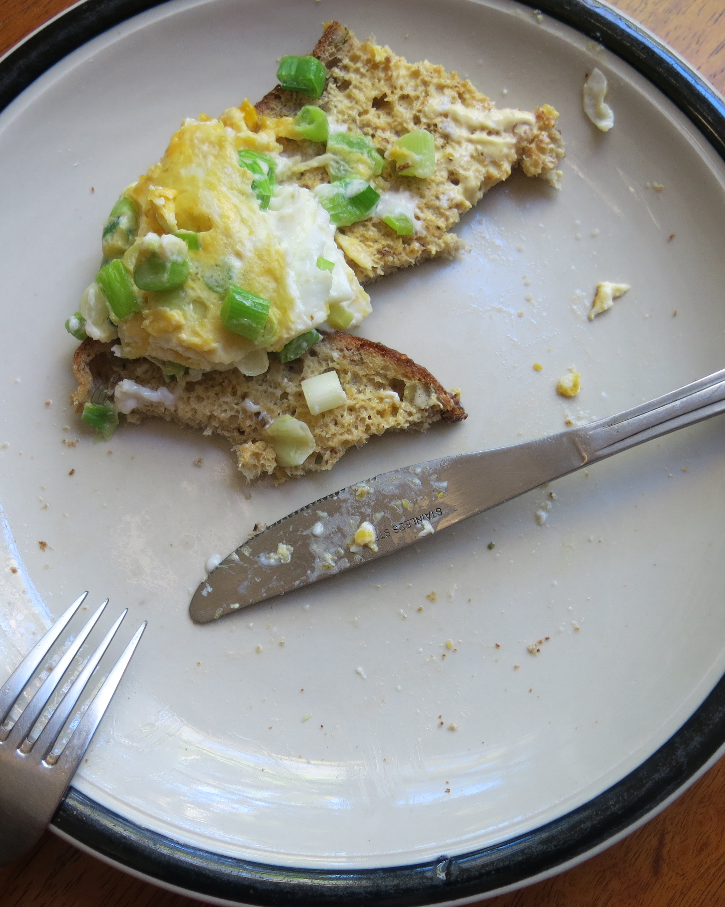 So I began with lunch. I took some of the shallots out of the soup pot and put them in a pan. Then once the soup was simmering, I made some toast and cracked two eggs into the pan.  Within minutes I was eating a meal straight out of my childhood.